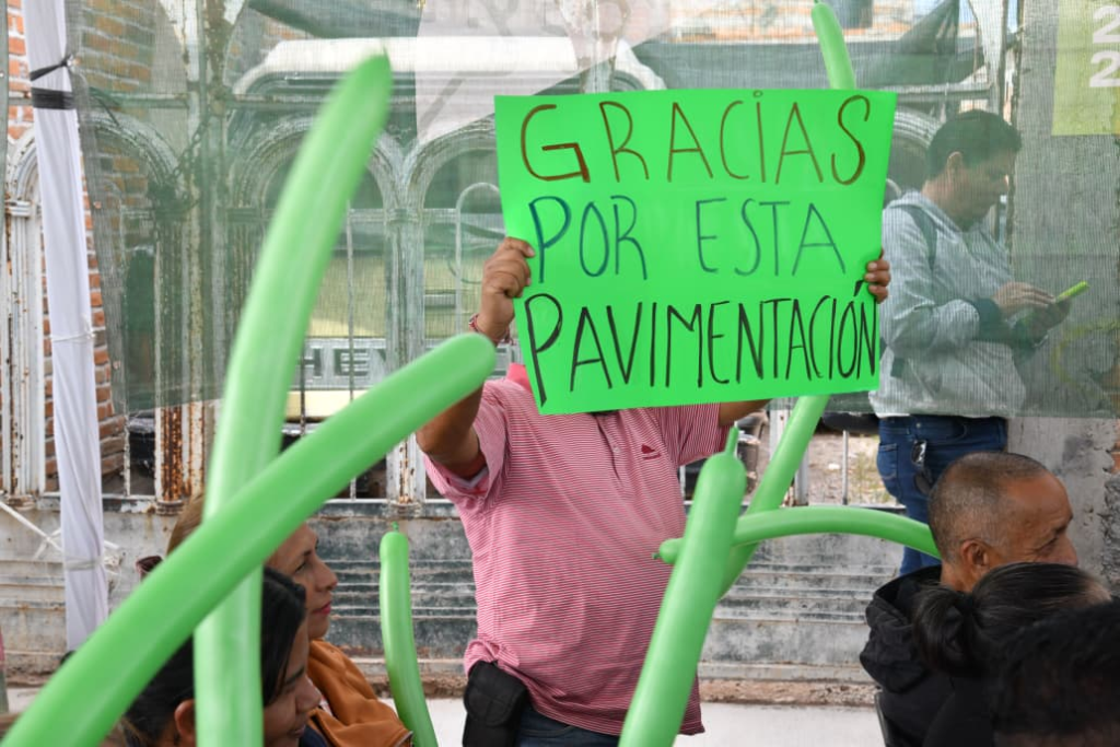 La semana pasada, el compromiso comenzó a tomar forma y comenzaron los trabajos de pavimentación, mediante un proyecto similar, que incluye trabajos de demolición del pavimento existente, sustitución de líneas de agua potable y drenaje sanitario, renovación de tomas y descargas domiciliarias, terracerías, construcción de banquetas y guarniciones, pavimentación con concreto hidráulico, señalética vial y la instalación de alumbrado público.