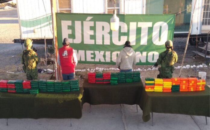 El Ejército Mexicano decomiso más de 130 kilos de posible cocaína en el estado de San Luis Potosí. Informó la vocería de la Secretaría de la Defensa Nacional.