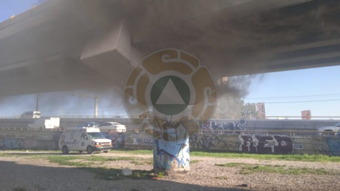 Incendio registrado en la parte baja del distribuidor vial Juárez movilizó a elementos de Protección Civil y al H. Cuerpo de Bomberos; no se reportaron personas lesionadas.