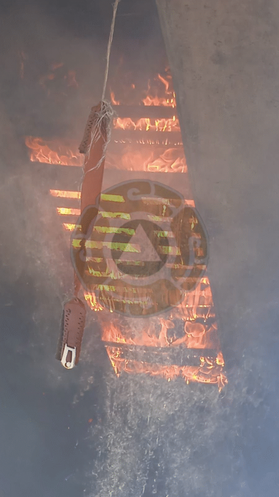 Al arribar al lugar, el personal localizó diversos objetos y muebles destruidos, entre ellos sillones, que se encontraban ardiendo entre las columnas del puente. El fuego generó una densa columna de humo que fue visible desde varios puntos elevados de la zona.