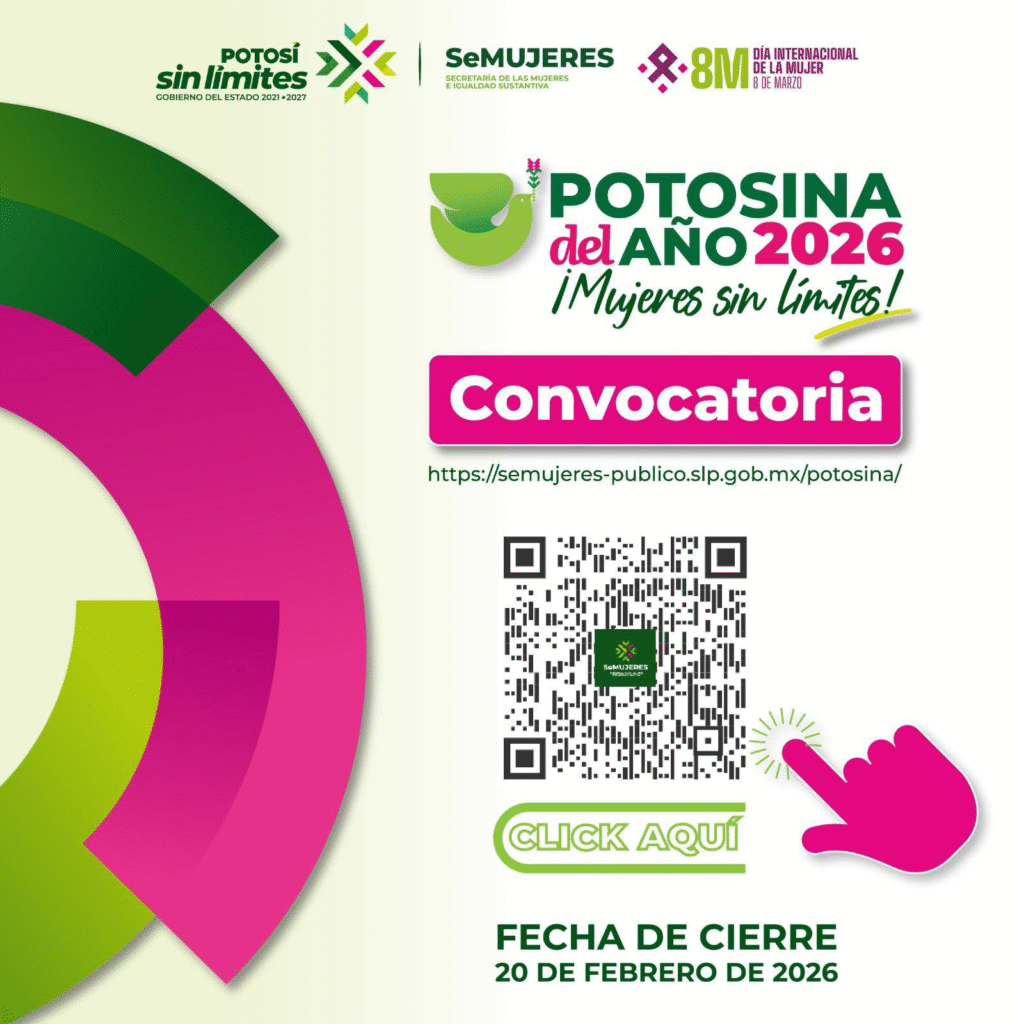 Con el respaldo del Gobernador Ricardo Gallardo Cardona, la Secretaría de las Mujeres e Igualdad Sustantiva (Semujeres) avanza en la recta final del certamen Potosina del Año Sin Límites 2026, que reconoce la aportación y liderazgo de mujeres de las cuatro regiones del Estado. La convocatoria, que refuerza el impulso institucional para el empoderamiento femenino y refleja el trabajo sin límites a favor de las potosinas, cerrará inscripciones el viernes 20 de febrero.