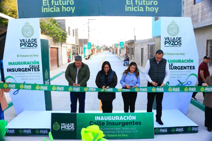 La Presidenta Concejal de Villa de Pozos, Paty Aradillas, llevó a cabo la inauguración de la calle Insurgentes, en la colonia Rancho la Libertad, la cual representa un avance significativo en la mejora de la infraestructura urbana, al fortalecer la movilidad, la seguridad y que impacta directa e inderactamente en beneficio de mas de 6 mil personas.