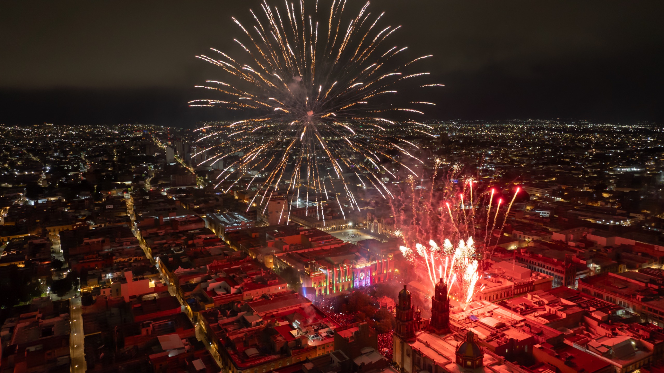 Ante miles de potosinos, el Gobernador del Estado realizó la representación del Grito de Dolores desde el Palacio de Gobierno, destacando la importancia de la identidad mexicana