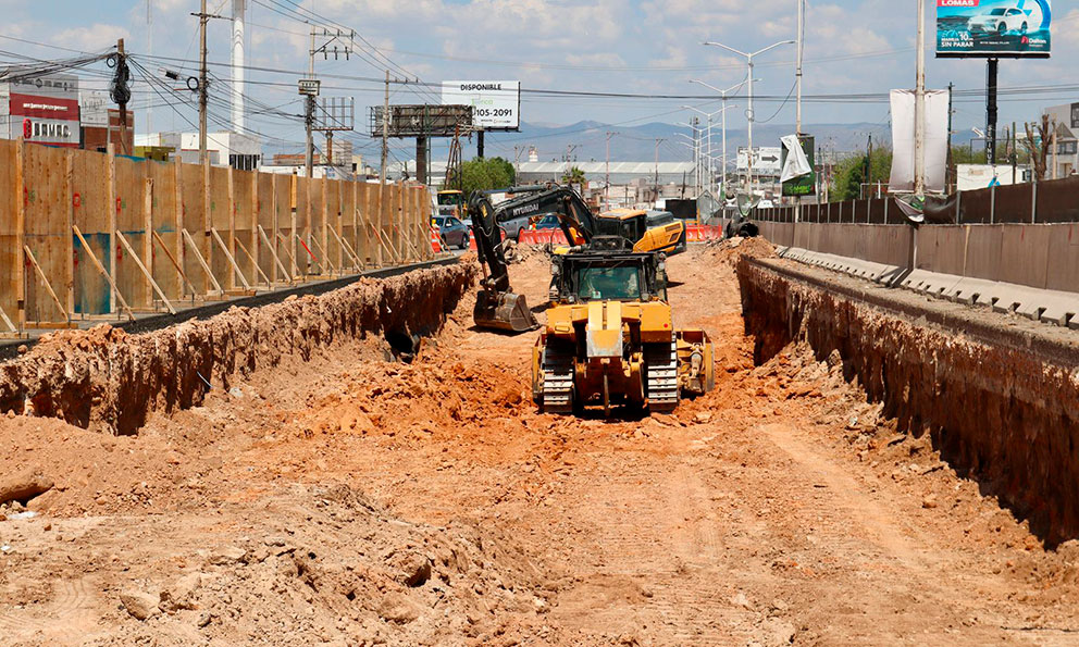De acuerdo con la Secretaría de Desarrollo Urbano, Vivienda y Obras Públicas (Seduvop), el proyecto presenta un avance cercano al 35 por ciento y forma parte del paquete de infraestructura impulsado por el gobierno estatal encabezado por Ricardo Gallardo Cardona, con el objetivo de fortalecer la movilidad urbana en la región. La titular de la dependencia, Isabel Leticia Vargas Tinajero, explicó que actualmente se desarrollan trabajos de reubicación de infraestructura subterránea, así como la conformación de terraplenes en las zonas laterales, labores consideradas esenciales para dar continuidad a las siguientes etapas constructivas.