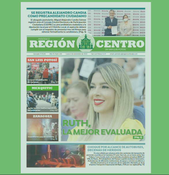 SE REGISTRA ALEJANDRO CANDIA COMO PRECANDIDATO CIUDADANO RUTH, LA MEJOR EVALUADA. CHOQUE POR ALCANCE DE AUTOBUSES, DECENAS DE HERIDOS. Arrancó rehabilitación de Carranza. Javier Jacobo realiza reposición de luminarias. Incendiaron casa de activista.
