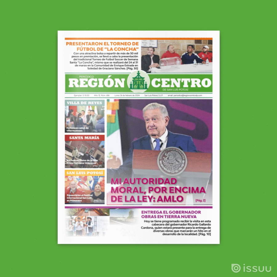 PRESENTARON EL TORNEO DE FÚTBOL DE “LA CONCHA”. MI AUTORIDAD MORAL, POR ENCIMA DE LA LEY: AMLO. ENTREGA EL GOBERNADOR OBRAS EN TIERRA NUEVA. Fortalecen salud de villarreyenses. Bachearon tramo de la calle Primo Feliciano Velázquez. Presentaron el Festival Internacional San Luis en Primavera.