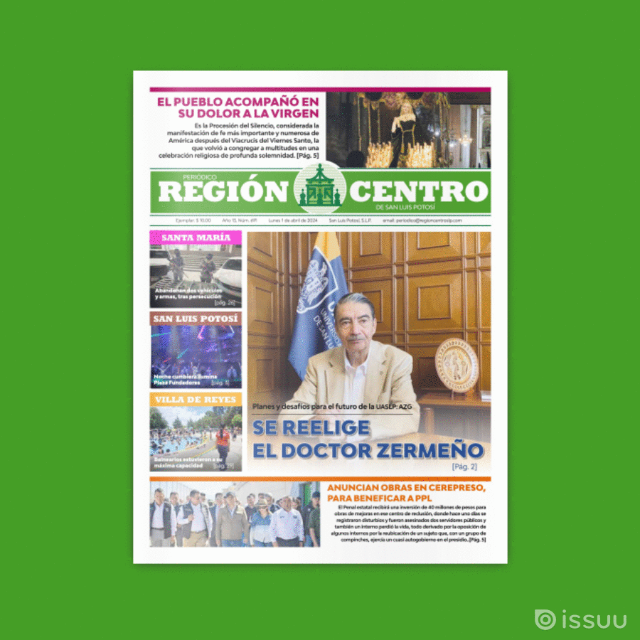 Planes y desafíos para el futuro de la UASLP: AZG | SE REELIGE EL DOCTOR ZERMEÑO. EL PUEBLO ACOMPAÑÓ EN SU DOLOR A LA VIRGEN. ANUNCIAN OBRAS EN CEREPRESO, PARA BENEFICAR A PPL. Abandonan dos vehículos y armas, tras persecución. Noche cumbiera ilumina Plaza Fundadores. Balnearios estuvieron a su máxima capacidad.