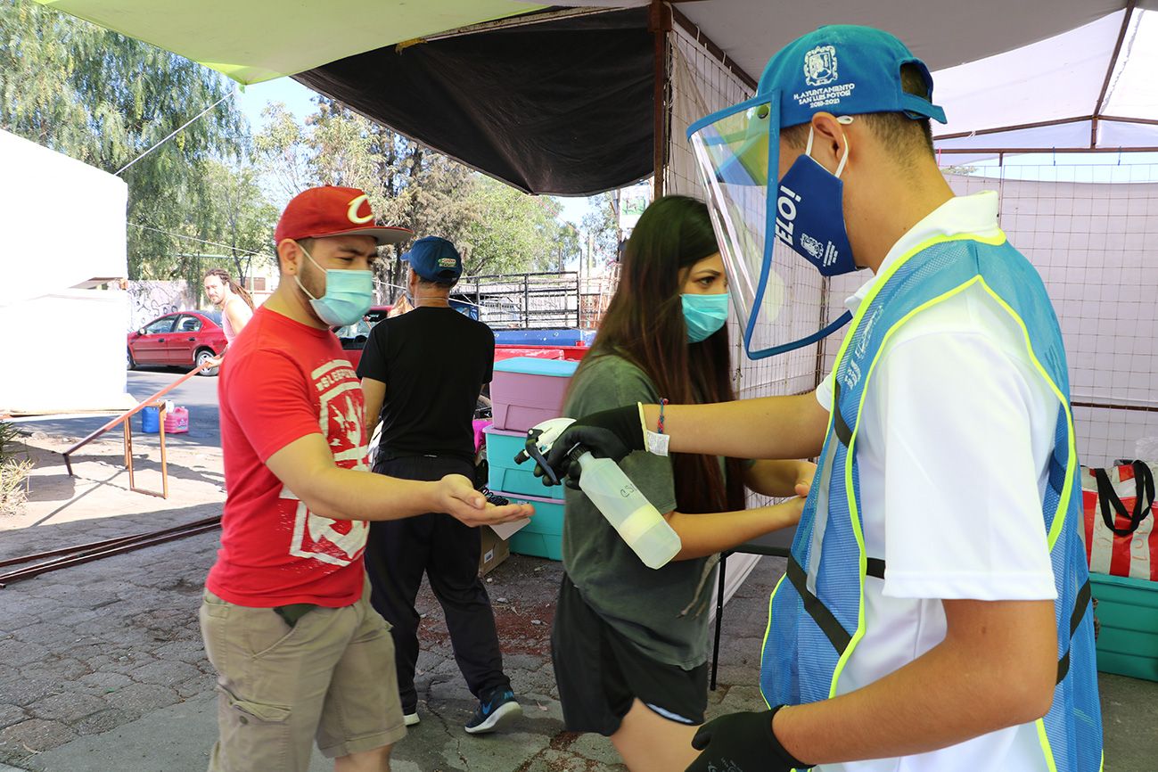 En un marco de total respeto a los Derechos Humanos, a través de un enfoque participativo y con un constante diálogo entre líderes y visitantes, el Gobierno Municipal continuará la aplicación de acciones sanitarias en el tianguis de Las Vías para contener la propagación del virus SARS CoV- 2.