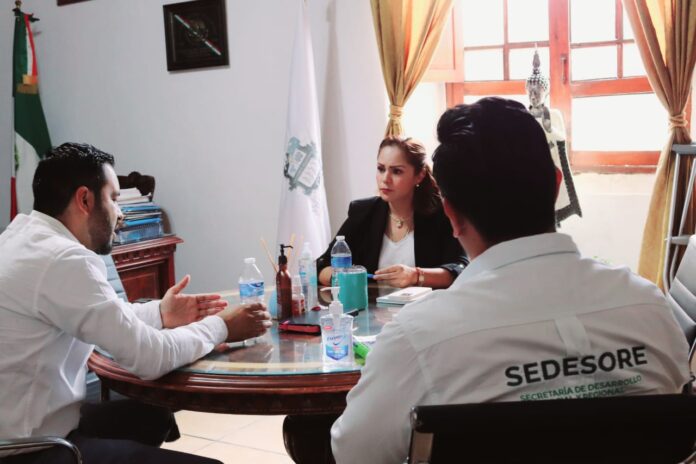 VILLA DE REYES, S. L. P. – La presidenta municipal de Villa de Reyes, Érika Irazema Briones Pérez recibió al secretario de Desarrollo Social y Regional (Sedesore), Juan Ignacio Segura Morquecho, para trabajar de la mano en diversos proyectos que se tienen en beneficio de las mujeres y sus familias de esta localidad.