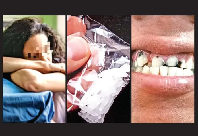 El crystal provoca deterioro físico acelerado, pérdida de peso extrema, caída de dientes, insomnio, temblores y agresividad. A nivel emocional, genera aislamiento, paranoia y pérdida de vínculos familiares.