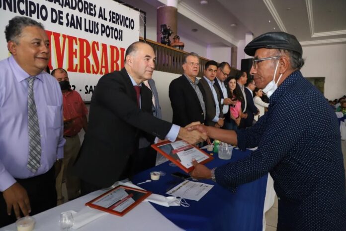 En la ceremonia, el alcalde Enrique Galindo, junto con el secretario del Sindicato, Guadalupe Valencia, entregaron 196 reconocimientos y estímulos económicos a las y los trabajadores con 20, 25 y 30 años de servicio. El evento contó con la presencia del empresario Miguel Valladares, en reconocimiento a la gestión de su padre como presidente municipal, en la que se consolidó el sindicalismo en el Ayuntamiento.