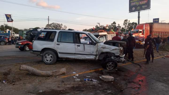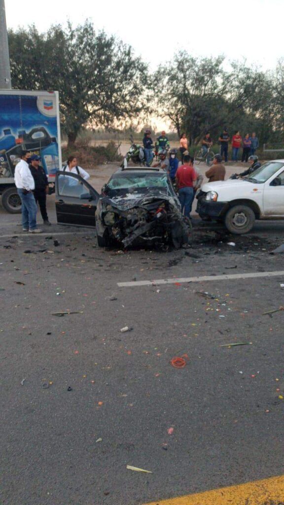 Los vehículos involucrados en el accidente son; una camioneta Ford, de la línea Explorer, blanca, además una camioneta Nissan, blanca, de modelo reciente y un automóvil compacto, negro. Los tres automotores resultaron con severos daños. La camioneta Explorer quedó en medio del camellón central, los otros dos en la otra orilla de la superficie de rodamiento.