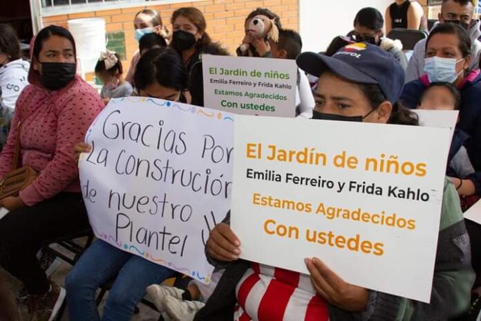 “La educación preescolar es uno de los momentos más maravillosos que puede vivir un ser humano, es una etapa en donde los pequeños estudiantes descubren sus capacidades y las potencializan, es una etapa en donde los colores, los cantos y los juegos marcan el futuro de cada individuo, por ello, hoy me da gusto estar con todos ustedes, me llena de felicidad iniciar los trabajos de techado del patio cívico de este hermoso jardín de niños”, señaló.
