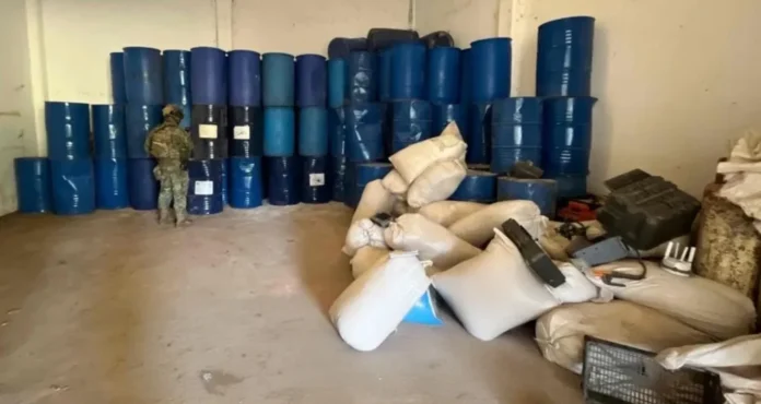 Autoridades federales aseguraron e inhabilitaron una bodega con casi 25,000 litros y más de 12 toneladas de sustancias químicas, así como un campamento clandestino en el estado de Guerrero, los cuales eran utilizados presuntamente para la producción de drogas sintéticas.