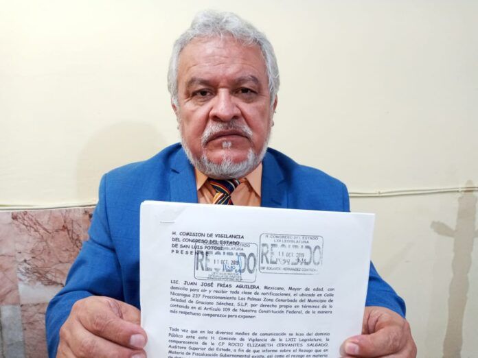 Los diputados de la sexagésima tercera legislatura desconocen el trabajo que realiza la Comisión de Vigilancia del Congreso del Estado y la Auditora Superior del Estado (ASE) Rocío Elizabeth Cervantes Salgado, los está engañando al pedirles que trabajen conjuntamente, pues lo que quiere es convertirlos en cómplices de las irregularidades que comete, consideró Juan José Frías Aguilera, miembro de la Asociación de Abogados de San Luis Potosí Postulantes Especializados en Oralidad, A.C.
