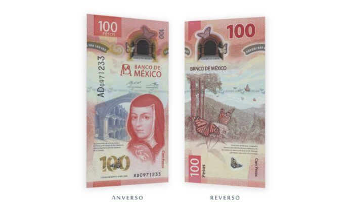 El reciente billete mexicano de 100 pesos, con la imagen de Sor Juana Inés de La Cruz plasmada en el Anverso, fue galardonado por la International Bank Note Society (IBNS) como el Billete del Año 2020.