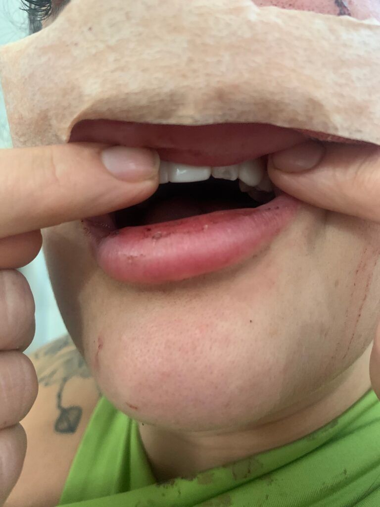 La primera en ser agredida fue Genevieve, pues recibió un puñetazo en la mandíbula que la noqueó, por lo que cayó al suelo y se descalabró. Después de ello, el sujeto continuó con Jamie, a quien le dio un fuerte golpe que le rompió la nariz y un diente.