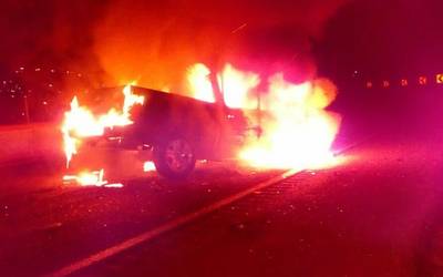 Una camioneta Toyota, de la línea Hilux, con placas TH-8090, fue encontrada incinerada y con balazos. El hallazgo lo hicieron algunos jornaleros que pasaban por el camino a la localizada de Zaragoza, quienes decidieron quedarse en el lugar, indicaron, por medio de una llamada a la comandancia, que se encontraba una camioneta envuelta en llamas totalmente.