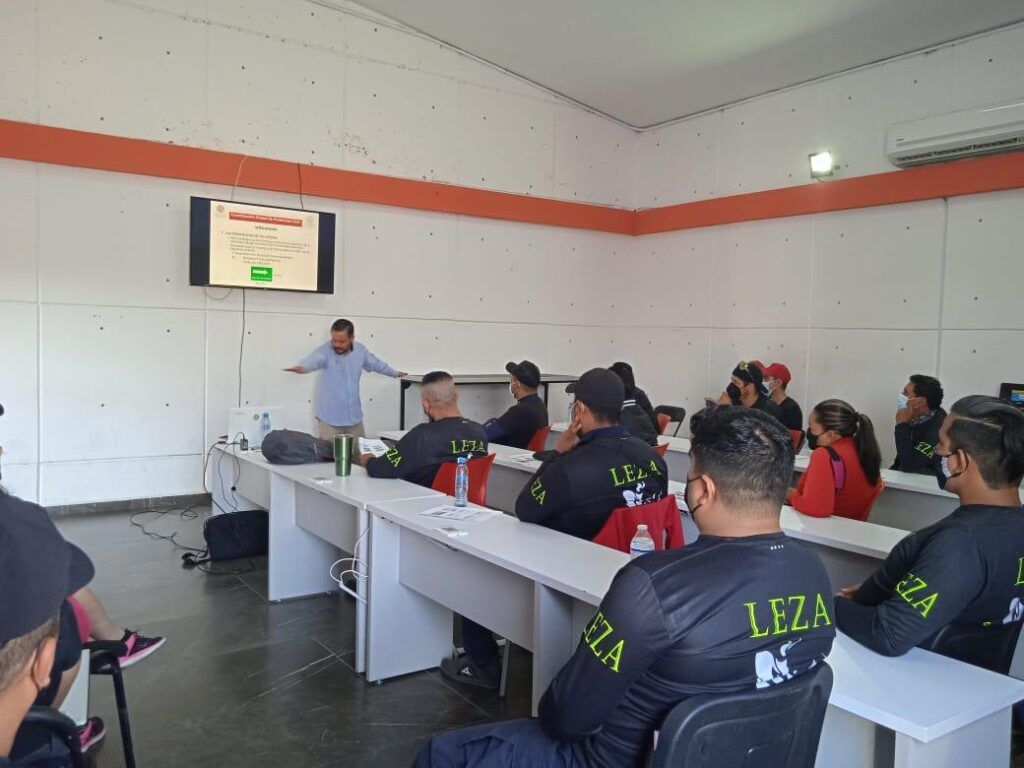 Personal de la empresa LEZA destacó que es la primera vez en seis años que una empresa de seguridad privada que presta sus servicios en el estadio Alfonso Lastras Ramírez, capacita a sus elementos en coordinación con la CEPC, lo cual refleja la disposición de ambas por colaborar y brindar herramientas para enfrentar alguna contingencia en este recinto.