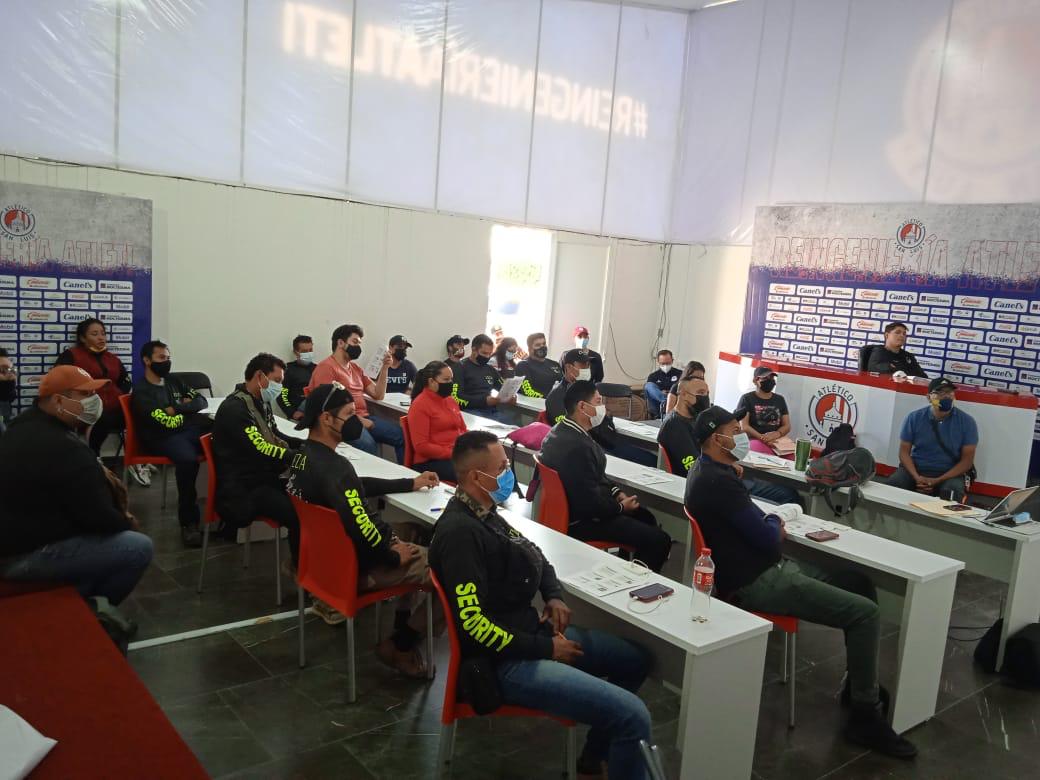 La CEPC solicitó a la directiva de Atlético de San Luis y a la empresa de seguridad Privada LEZA, cumplieran con lo establecido en la Ley de Protección Civil del Estado, y en acompañamiento a esta instrucción acordaron la realización del curso de capacitación.