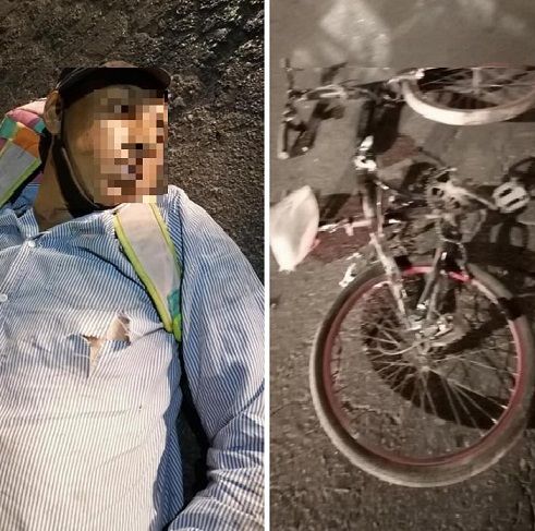 De pronto fue embestido por un vehículo no identificado, el cual lo proyectó por el aire para caer en forma aparatosa sobre el asfalto cerca de su bicicleta y tuvo una muerte casi inmediata.