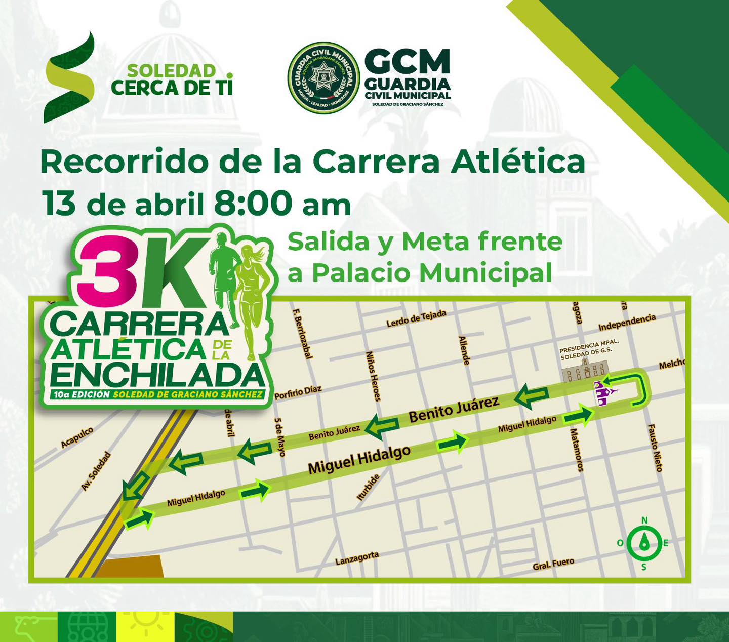 La Dirección de Seguridad Vial de Soledad de Graciano Sánchez ha informado sobre el cierre de diversas vialidades el próximo domingo 13 de abril debido a la celebración de la tradicional Carrera Atlética de la Enchilada.