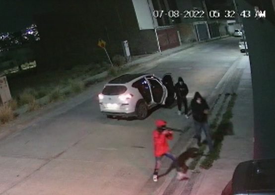 Las imágenes revelan de manera precisa el momento en que los vecinos llegan a su domicilio en su automóvil particular, cuando estaban a punto de entrar a la cochera, del vehículo desciende una mujer mientras que el conductor continúa a bordo. Mientras que la mujer se encontraba en la banqueta, se acerca un segundo vehículo de color blanco de donde descienden cuatro hombres fuertemente armados que apuntan tanto a la mujer como al conductor. Por fortuna, ambos logran ponerse a salvo por lo que los criminales no tienen de otra más que retirarse de lugar.