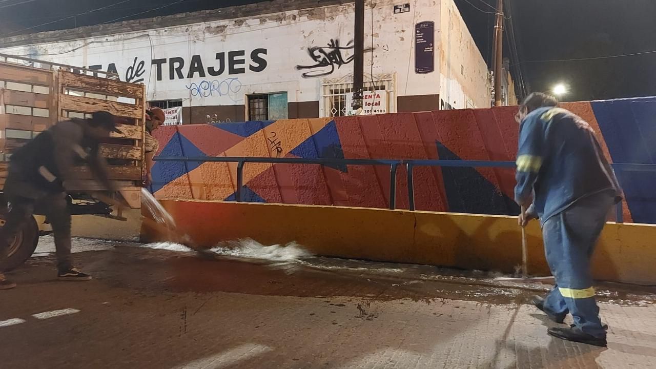 El Director de Servicios Municipales del Ayuntamiento de San Luis Potosí, Christian Azuara Azuara, informó que se han mantenido los trabajos de limpieza del paso a desnivel en el puente Manuel José Othón, con la máquina karcher, hidrolavadora de motor para eliminar los últimos residuos.