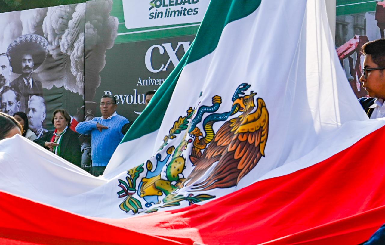 El Ayuntamiento de Soledad de Graciano Sánchez conmemoró el 115 aniversario de la Revolución Mexicana con un Desfile Cívico-Deportivo encabezado por el Alcalde Juan Manuel Navarro Muñiz, evento que reunió a cientos de familias en la Plaza Principal y consolidó un ambiente de respeto cívico y orgullo nacional. El presidente municipal destacó que estos actos acercan a la población a sus raíces históricas, fortalecen la identidad y promueven valores que impulsan la convivencia comunitaria.