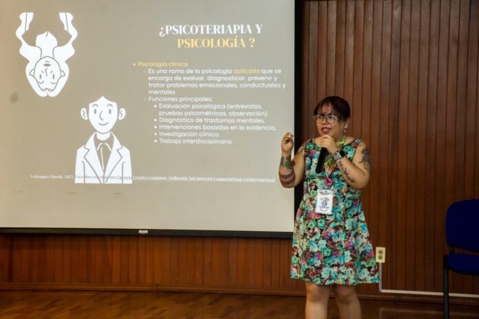 En la conferencia titulada “¿Qué es la psicología?”, dirigida a estudiantes universitarios, la Mtra. Lourdes Regina Velázquez Pineda invitó a reflexionar sobre si el estudio de la mente y el comportamiento humano debe considerarse una disciplina o una ciencia. “Existen argumentos en ambas posturas. Analizamos la discusión constante que ha surgido a lo largo del tiempo, influida por diversas teorías y pensadores, lo que ha generado distintas concepciones sobre su objeto de estudio. Finalmente, abordamos una de sus aplicaciones más conocidas: el enfoque clínico y su vínculo con la psicoterapia, lo que destaca las diferencias entre ambos conceptos”, señaló.