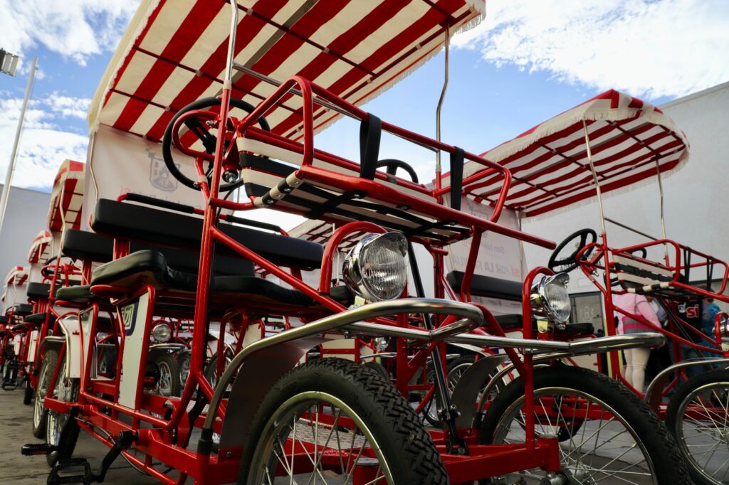 Las bicicletas de cuatro ruedas tienen capacidad para cinco ocupantes, los paseos parten desde el centro cultural Palacio Municipal ubicado en plaza de Armas y estarán en funcionamiento a partir de este fin de semana.