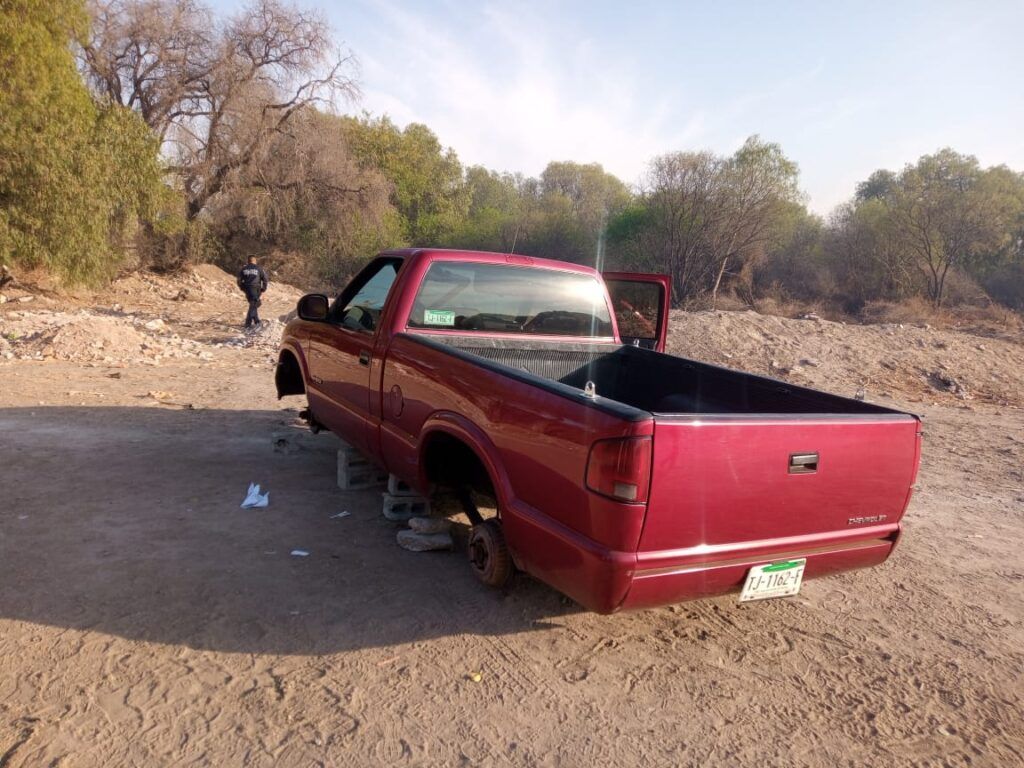 Una camioneta Chevrolet, tipo S-10, modelo 1995, color rojo, se localizó en la calle Villa Golondrinas y las vías México-Laredo, en la colonia Tercera Chica. La unidad cuenta con reporte de robo el día 03 de marzo de 2021, en avenida Salvador Nava Martínez.