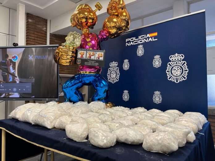 Durante la investigacion, las autoridades localizaron 40 kilogramos de metanfetamina ocultos en una estatua con la figura de Popeye, cuyo destino final era Tenerife, isla ubicada en el Oceano Atlantico. El metodo de ocultamiento fue identificado como parte de la operacion logistica de la red criminal.
