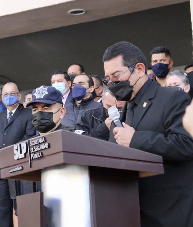 Una vez arribado y tras montarse una guardia en su honor, el Secretario General de Gobierno, José Guadalupe Torres Sánchez, externó sus sinceras condolencias y aseguró que también esta pérdida resulta dolorosa para la sociedad potosina “porque pierden un servidor público ejemplar, que en el ejercicio valiente de sus responsabilidades ha realizado un sacrificio heroico de trayectoria intachable”