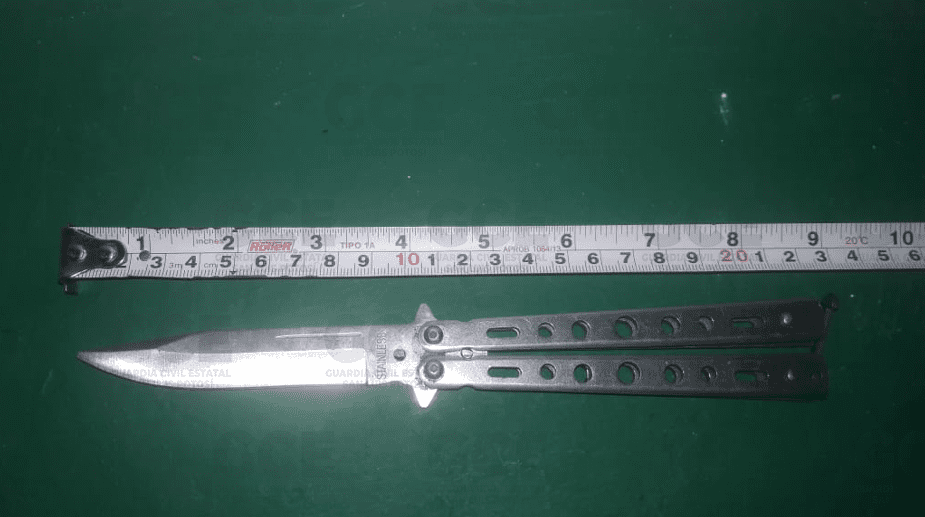 Uno de los hechos ocurrió en la zona centro de la capital potosina, en las calles de Vicente Guerrero y Pasaje Zaragoza; ahí, fue detenido Christian, de 33 años de edad, a quien se le aseguró una navaja de aproximadamente 20 centímetros. A su vez, en el municipio de Soledad de Graciano Sánchez, sobre en las calles Adolfo López Mateos y Julián Carrillo; los elementos de la GCE detuvieron a Nicolás, de 27 años de edad, después de que se le aseguró una navaja de aproximadamente 23 centímetros.