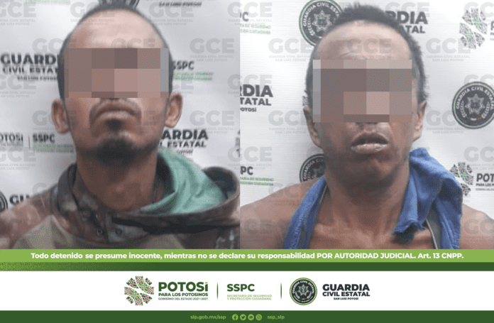 San Luis Potosí, S.L.P.- Gracias a la atención oportuna de un llamado de auxilio solicitado a través de la Línea de Emergencias 911, oficiales de la Guardia Civil Estatal (GCE) detuvieron a dos hombres por el presunto delito de robo.