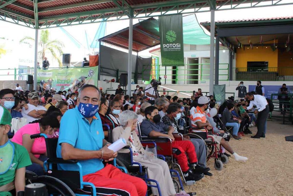 Durante el evento, en el que estuvieron presentes el Gobernador Ricardo Gallardo, el presidente de la fundación ProVista, Julio Hernández Mandiola; el presidente del Patronato de la FENAPO, Luis Antonio Zamudio Martínez, y personal del DIF estatal, entregó sillas de ruedas a beneficiarios, cuyas peticiones fueron hechas a lo largo de toda la temporada de feria. La campaña “Ver bien para vivir mejor” es una iniciativa con la que el DIF estatal busca incrementar considerablemente el número de potosinas y potosinos beneficiados, de forma solidaria se sumó a la causa “Goles para ver mejor” implementada entre la dependencia estatal, la Fundación C&H y el Atlético de San Luis a beneficio de los grupos más vulnerables de la sociedad potosina.