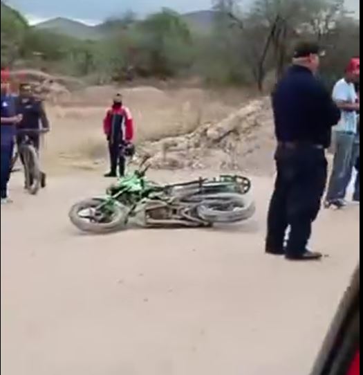 VILLA DE REYES. – Por la tarde ocurrió un accidente de motocicleta en el libramiento Villa de Reyes–San Felipe, a la altura de la Central Flecha Amarilla, donde un adulto y una menor de edad resultaron lesionados tras una aparatosa caída.