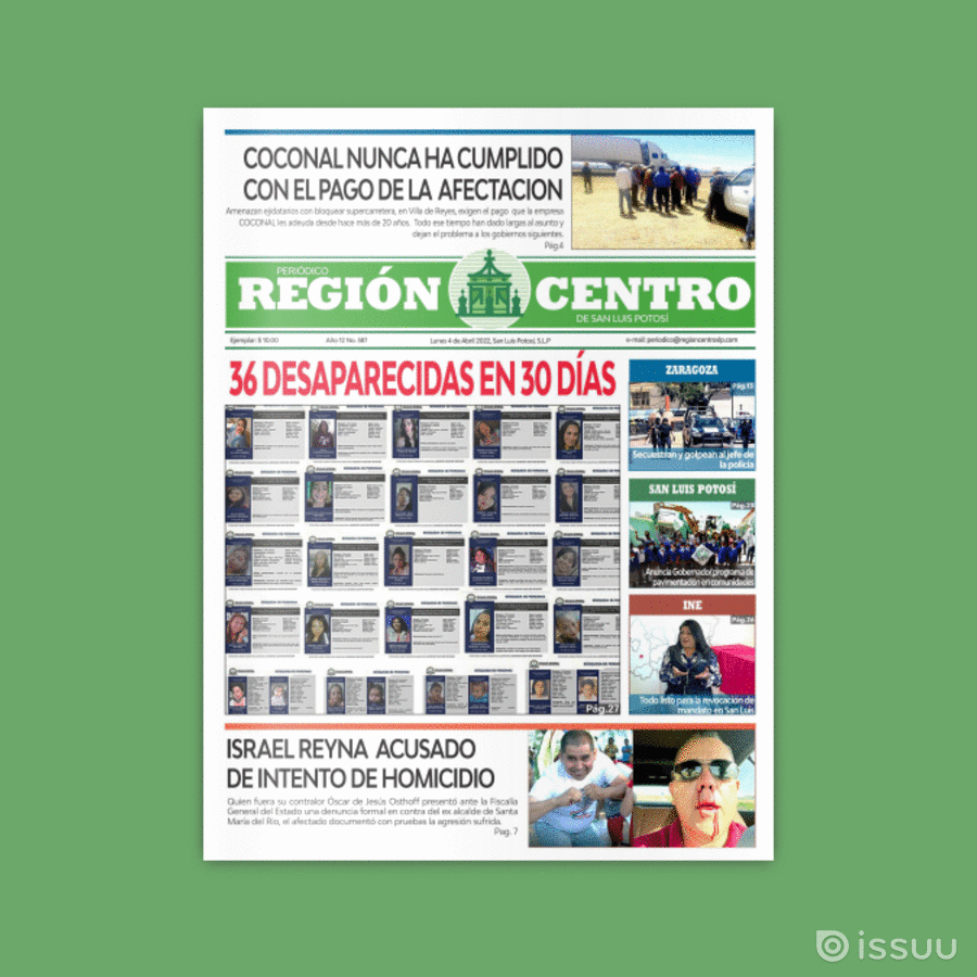 COCONAL NUNCA HA CUMPLIDO CON EL PAGO DE LA AFECTACION. 36 DESAPARECIDAS EN 30 DÍAS. ISRAEL REYNA ACUSADO DE INTENTO DE HOMICIDIO. Secuestran y golpean al jefe de la policía de Zaragoza SLP. Anuncia Gobernador Ricardo Gallardo Cardona programa de pavimentación en comunidades. Todo listo para la revocación de mandato en San Luis.