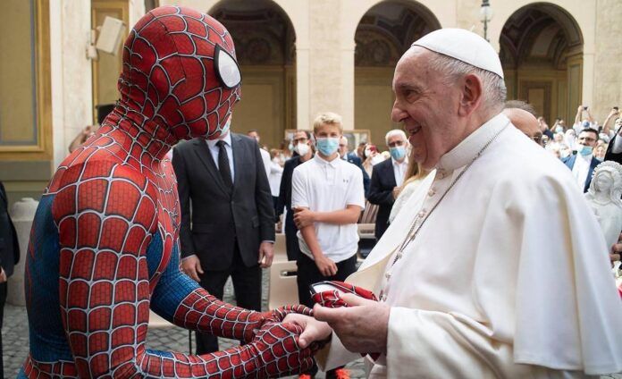 Al concluir su tradicional Audiencia General de los miércoles, el Papa dedicó un tiempo para saludar e intercambiar algunas palabras con el italiano Mattia Villardita, conocido en el país por visitar a niños enfermos en hospitales con un disfraz del célebre hombre araña.