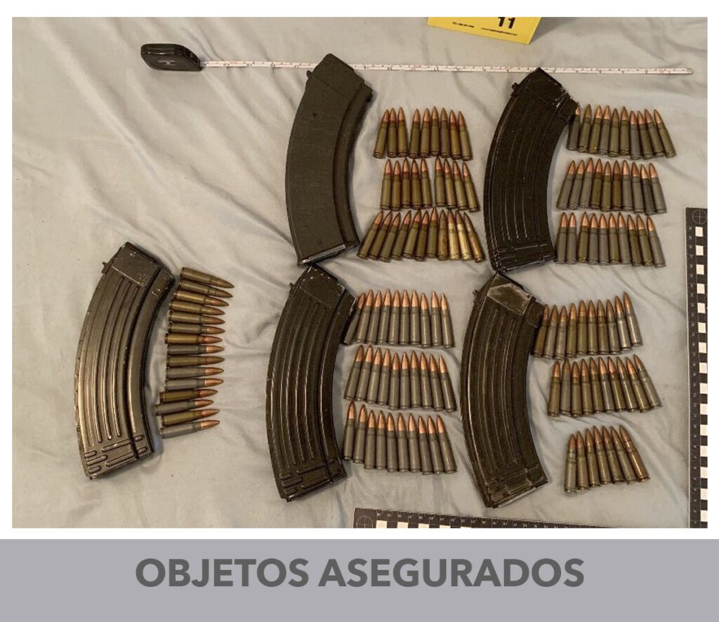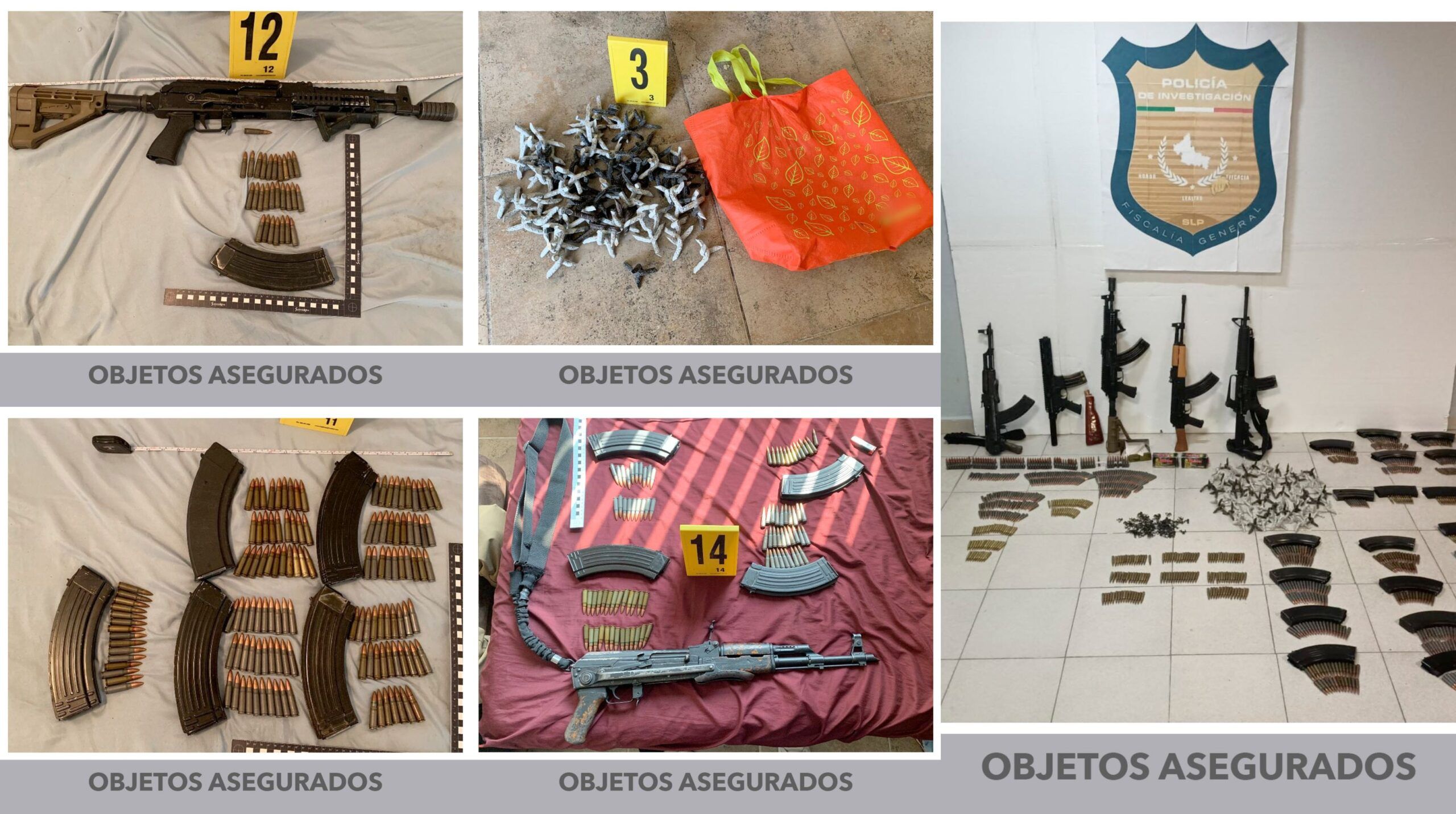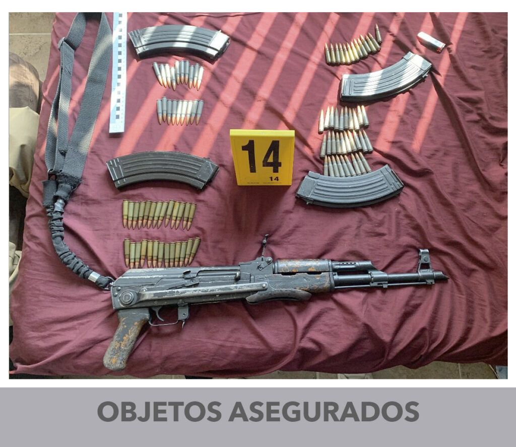 Una vez en el inmueble, procedieron a realizar la inspección, localizando 5 armas de fuego largas, siendo tres calibres 7.62 y dos calibre 223 con sus respectivos cargadores abastecidos.