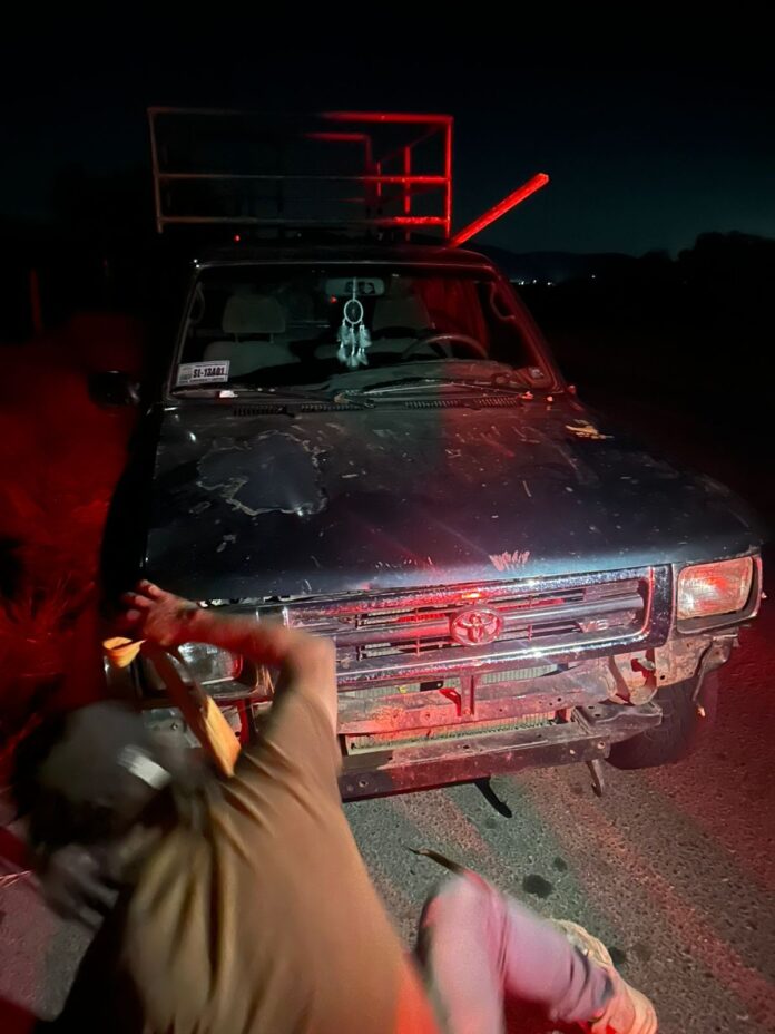 TIERRA NUEVA. – La medianoche se vio alterada en el entronque de la carretera federal 57 con el Ramal que conduce a la cabecera municipal de Tierra Nueva, por La Querencia, luego de que vecinos del lugar auxiliaran a un hombre que se encontraba junto a una camioneta con evidentes daños tras haber sufrido un accidente.