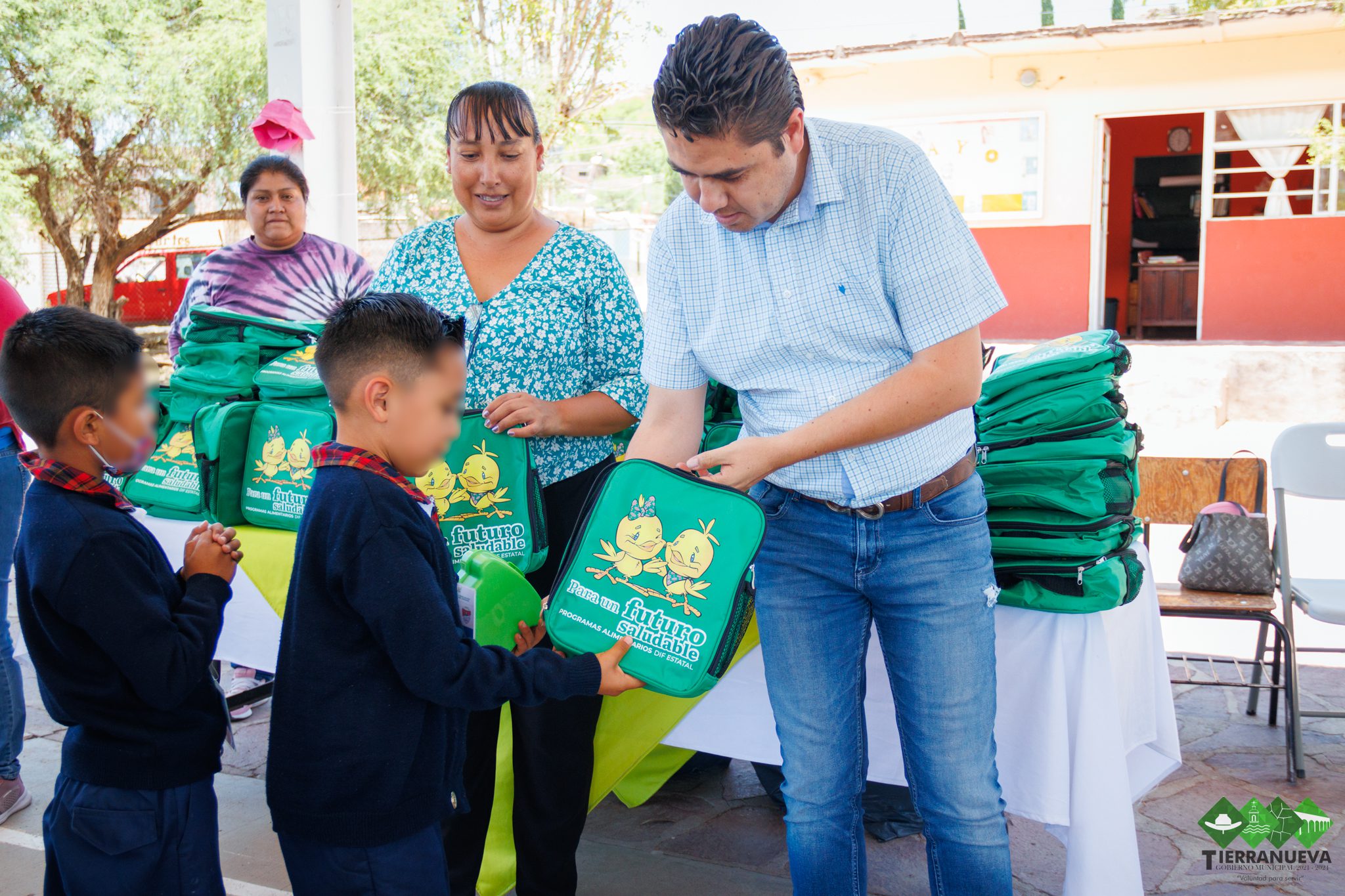 TIERRA NUEVA. – El martes pasado se llevó a cabo un evento significativo en las escuelas primarias Leona Vicario y José Mariano Jiménez, donde se realizó una entrega de loncheras a niñas y niños beneficiarios del Programa de Desayunos Escolares.