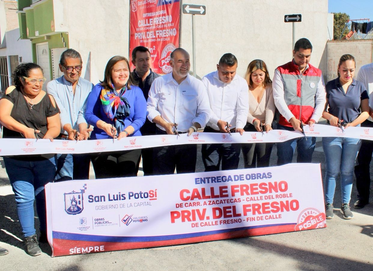 Al dar la explicación de los trabajos realizados en calle del Fresno y privada del Fresno, el Director de Obras Públicas, Nazario Pineda Osorio, detalló que se renovaron más de 2 mil 300 metros cuadrados de superficie de rodamiento, a lo que se sumó la modernización de redes de drenaje, descargas sanitarias, tomas de agua domiciliarias, guarniciones, banquetas, además del pintado de pasos peatonales y la colocación de señalética vertical, en donde antes había sólo terracería. Señaló que el programa Vialidades PotoSínas continúa con el rescate de calles de colonia, y hasta el momento ya se alcanzaron los 850 mil metros cuadrados regenerados de manera integral, “y que hoy aquí están reflejados en la zona norte de San Luis Potosí”.