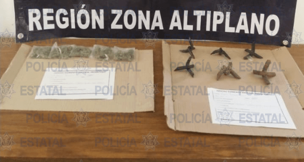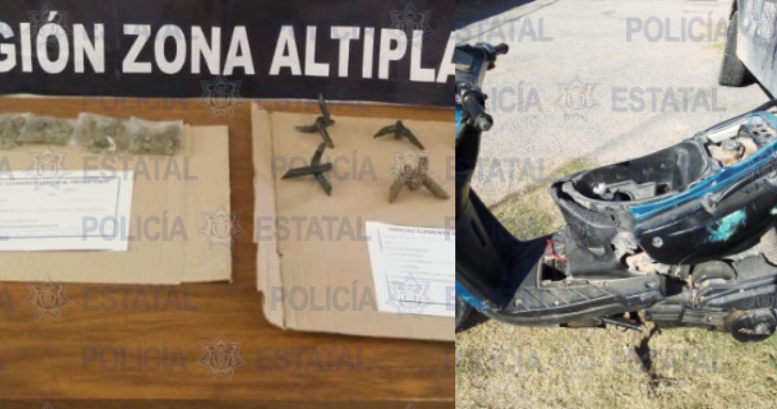MATEHUALA, SLP. – Derivado de los operativos llevados a cabo para prevenir la comisión de hechos delictivos en la región Altiplano, Policías Estatales aseguraron una motocicleta abandonada con droga y varios objetos metálicos conocidos como poncha llantas.
