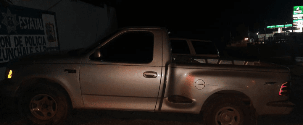 Por último, en la localidad Palma Pegada, en el municipio de Salinas, elementos Estatales aseguraron 49 gramos de marihuana y cinco dosis de cristal, en una camioneta marca Chevrolet, tipo Blazer, color verde sin placas, la cual se encontraba en aparente estado de abandono.