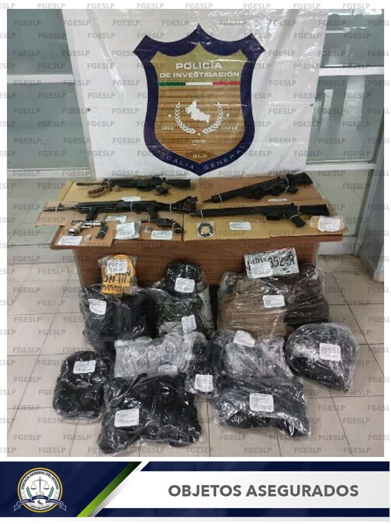 CIUDAD VALLES. – Personal Operativo de la Fiscalía General del Estado de San Luis Potosí (FGESLP) logró la localización y el aseguramiento de varias armas, cargadores y cartuchos útiles, además de equipo táctico en un domicilio ubicado en el municipio de Ciudad Valles.