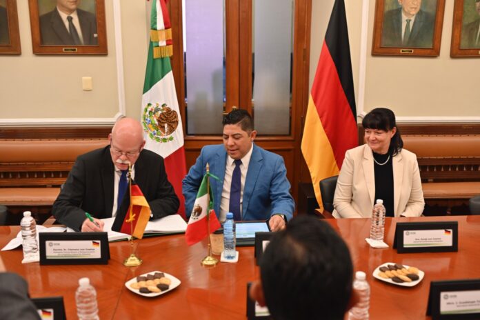 Con el objetivo de estrechar lazos en materia económica, educativa, cultural, comercial, de medio ambiente, y plantear la posibilidad de nuevas inversiones, el gobernador de San Luis Potosí, Ricardo Gallardo Cardona recibió al embajador extraordinario y plenipotenciario de la República Federal de Alemania en México, Clemens Von Goetze, a quien presentó las facilidades para la atracción de inversiones, así como las fortalezas del Estado con infraestructura y más apoyo a la ciudadanía.