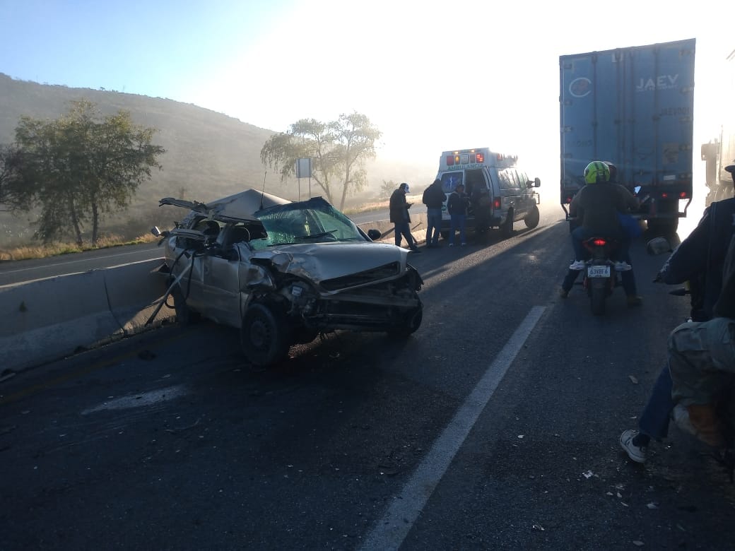 Mexquitic de Carmona.- Durante la mañana del jueves 16 de noviembre se registró un accidente en la carretera Zacatecas San Luis a la altura de la presa Álvaro Obregón de Mexquitic de Carmona.