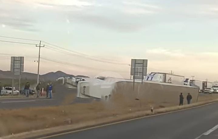 El percance ocurrió aproximadamente a un kilómetro antes del acceso a la cabecera municipal de Santa María del Río, cuando, por causas que aún se investigan, el operador del vehículo pesado perdió el control de la unidad y terminó bloqueando por completo la vialidad.